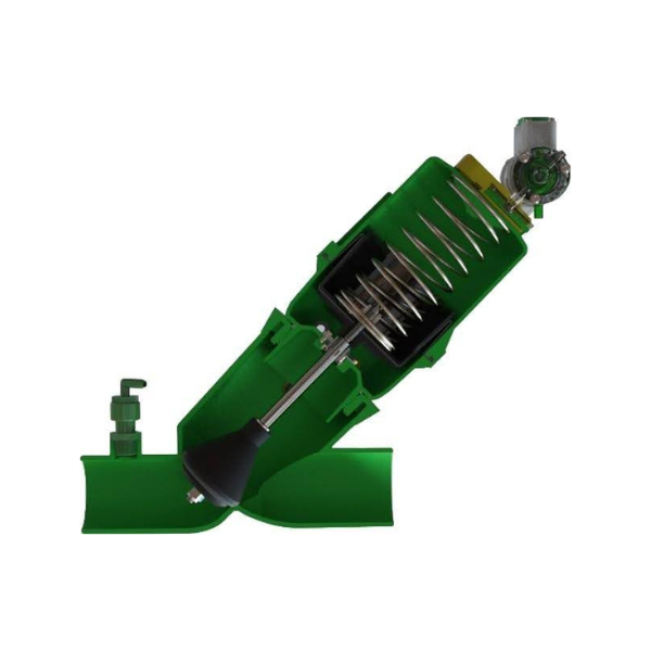 Η βαλβίδα είναι ενεργοποιούμενη πνευματικά μέσω διαφορικής πίεσης και όχι μηχανικά. Η ενεργοποίηση της βαλβίδας μέσω διαφορικής πίεσης επιτρέπει την πλήρη εκκένωση του υγρού θαλάμου του φρεατίου σε κάθε κύκλο λειτουργίας της βαλβίδας.